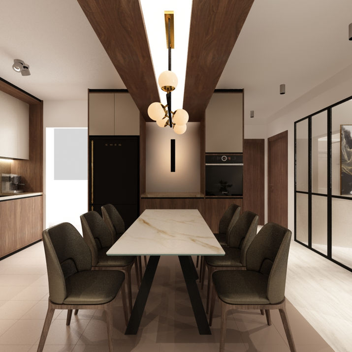 A client who loves the approach of Japandi Design. The resale flat is than transformed with a touch of walnut wood finishing with a off white surface on the wall through out the living space that elevates the Japanese touch. By inviting black frames into the space, this allow a minimal Scandinavian approach.